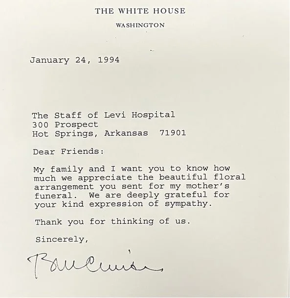 1994: Letter received from President Bill Clinton.